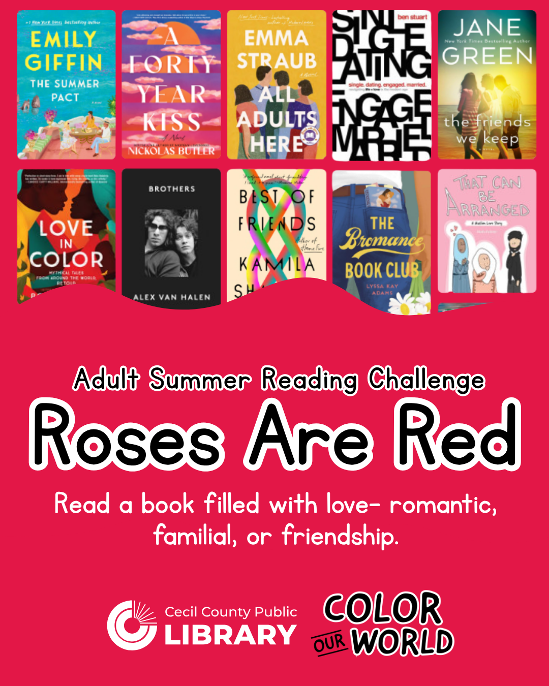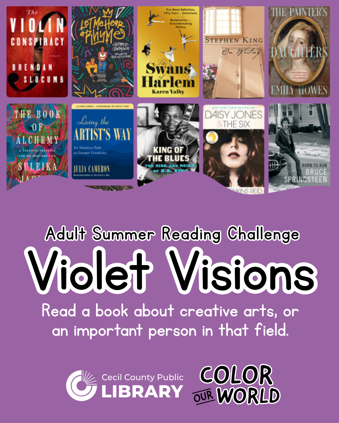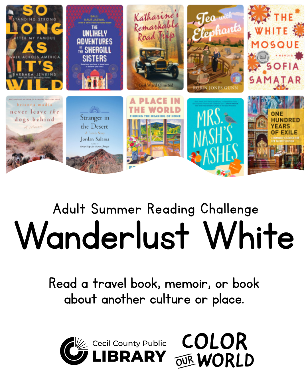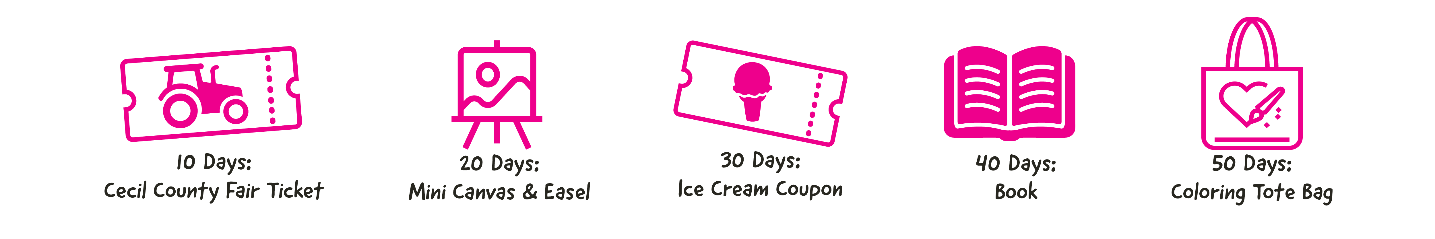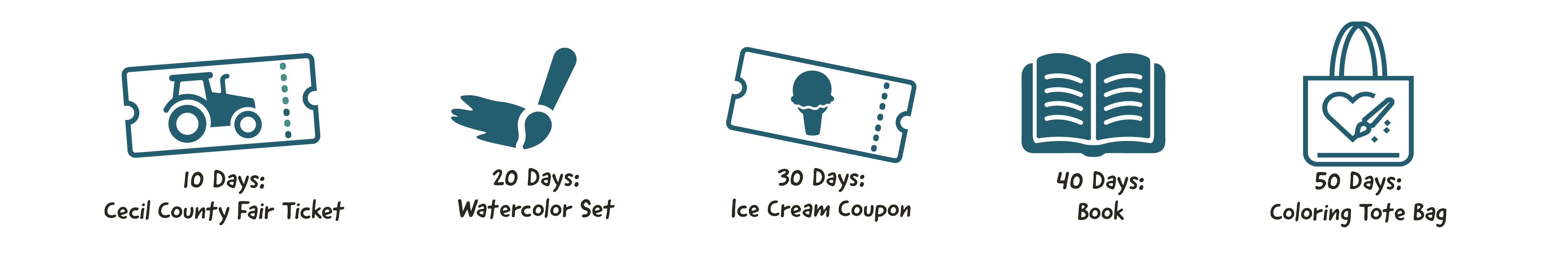 Pick up a reading log from any branch of the Cecil County Public Library. Visit the library to receive your reading rewards and enter raffle tickets for a chance to win a prize.