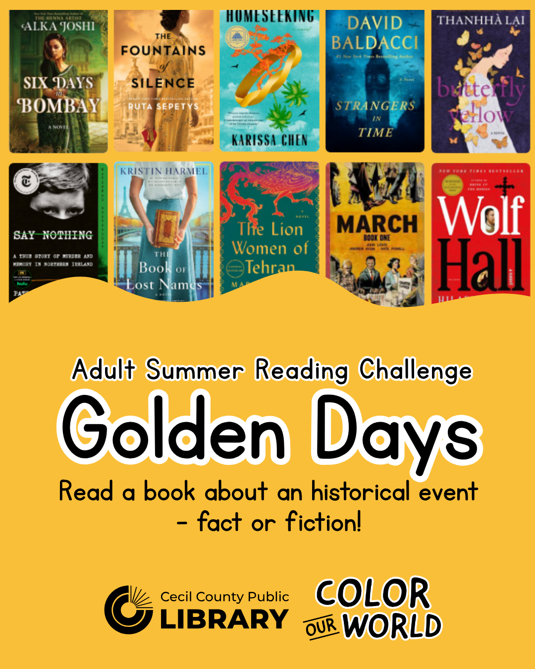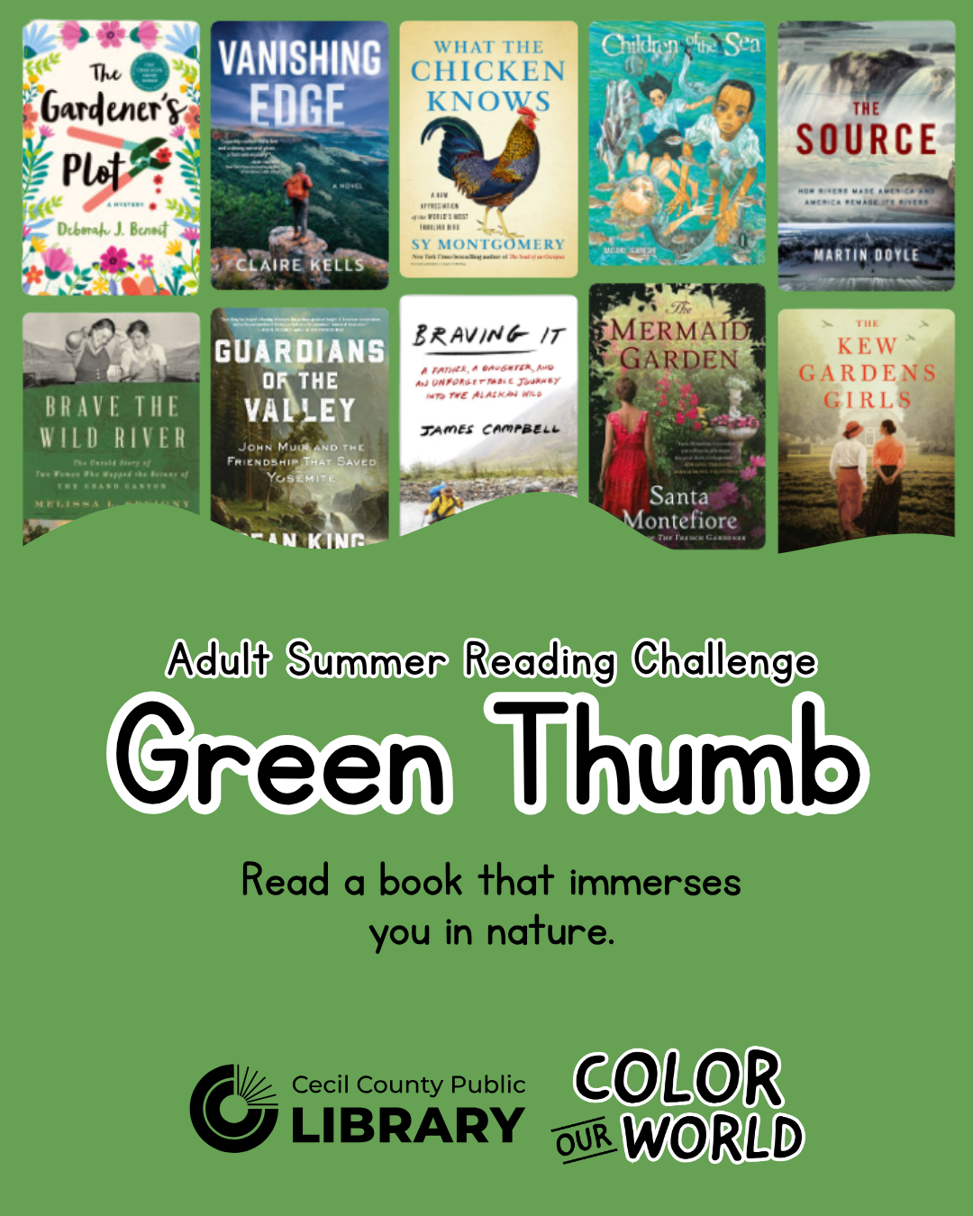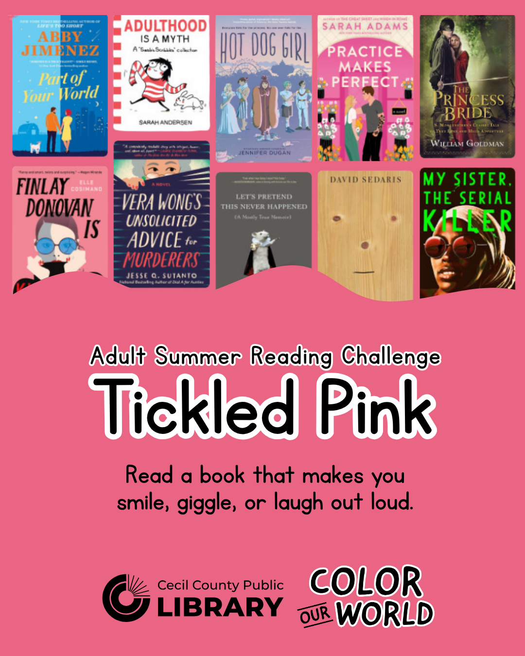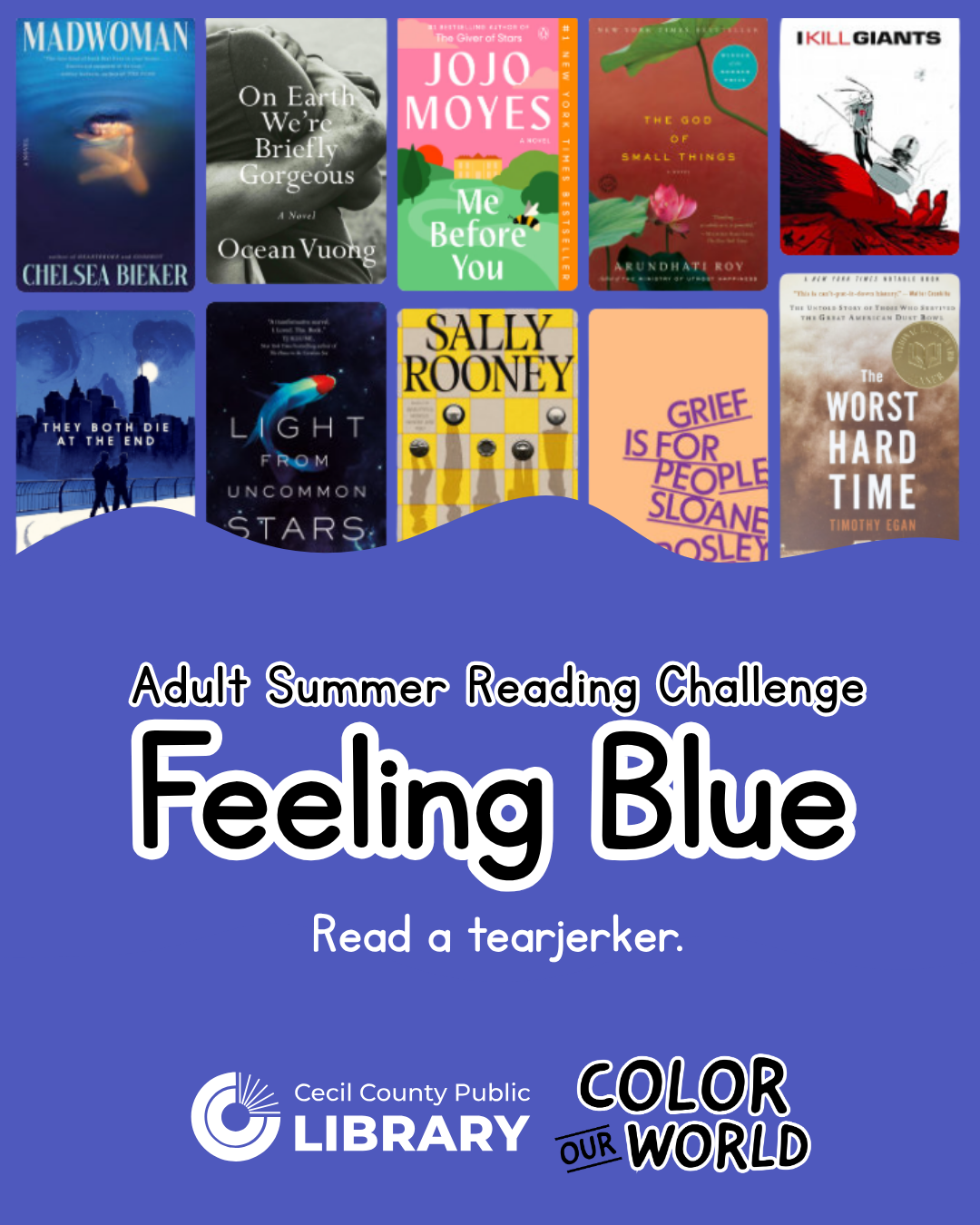 Mark each reading challenge you complete. Then, visit the library to enter for a chance to earn (2) tickets to the annual Crab Crawl (9/13/25).