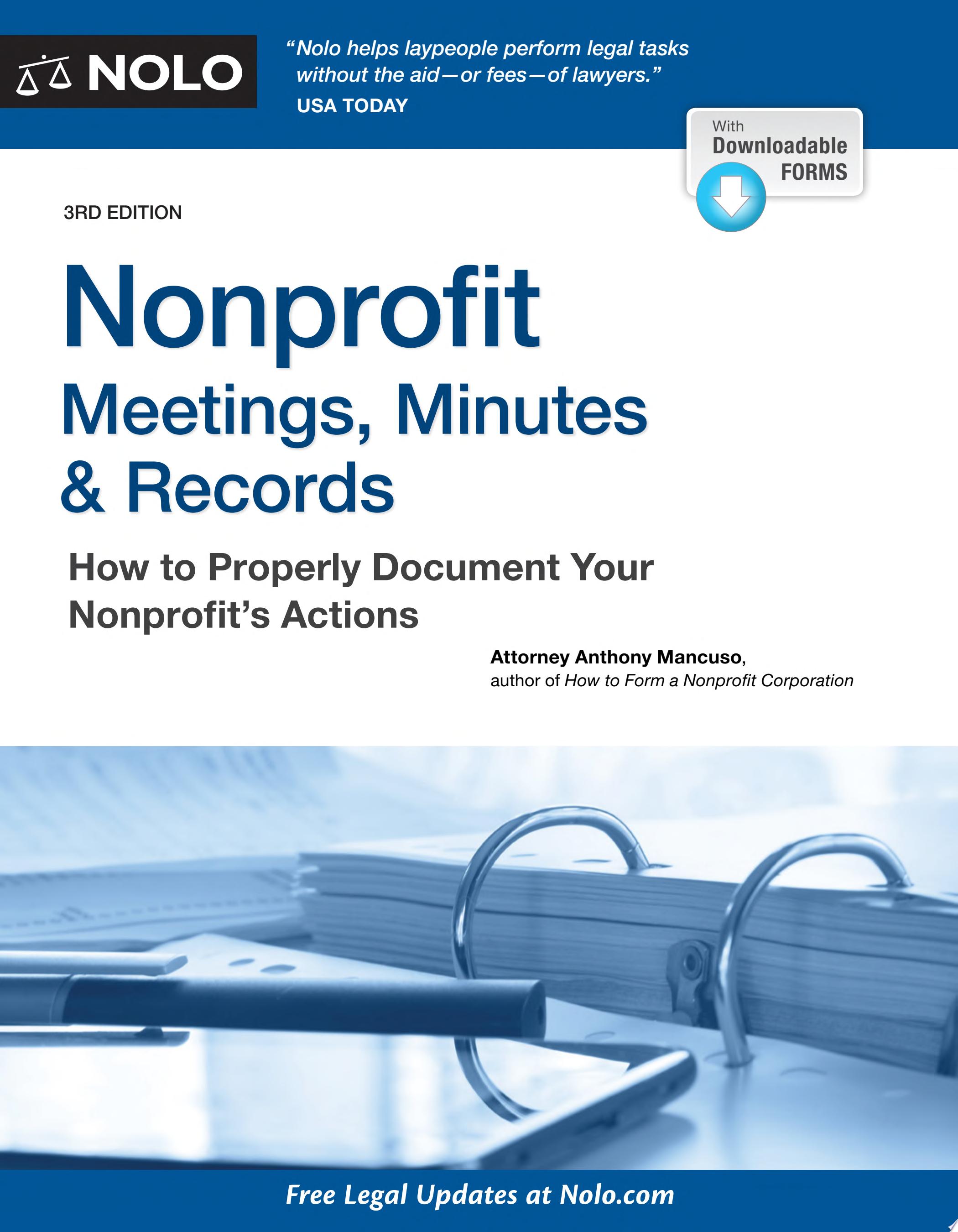 Nonprofit Meetings, Minutes & Records also provides useful tips and advice on how to do important tasks, such as organizing records, preparing meeting folders, and taking minutes. Plus, all necessary legal documents are included for you to fill out. It's everything you need to keep your nonprofit running smoothly and legally. -